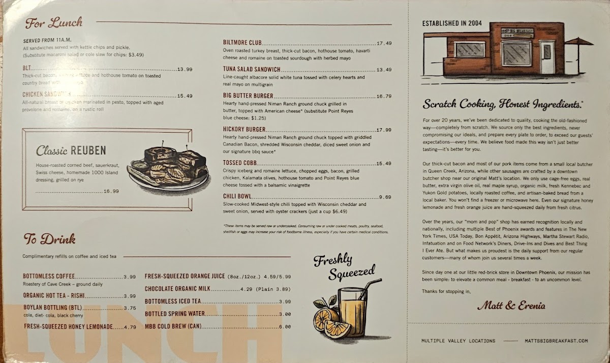 Welcome to Matt's Big Breakfast, a beloved brunch spot located in the heart of Phoenix at 825 N 1st St. This restaurant has garnered a reputation for serving delicious breakfast and brunch fare that showcases the best of classic American cuisine, all in a laid-back and inviting atmosphere.