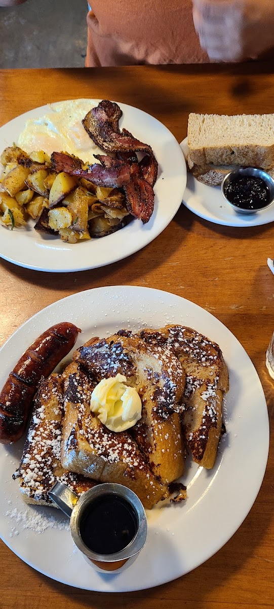The staff are quick, friendly, and attentive. We both really enjoyed our meals. The French toast is a must, but it is a lot for one person. We also enjoyed the grain breakfast bowl. It doesn’t have a ton of flavor, but I added a little bit sauce and it was perfect. My only complaint is how loud it gets. There doesn’t seem to be any noise absorbing decor and it can make it hard to hear whoever you are with.